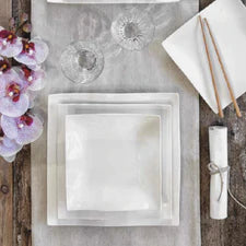 Il servizio di piatti Helton è adatto per creare un' atmosfera elegante e delicata. La particolarità di questo set è la forma quadrata con i bordi ondulati che rende la vostra tavola diversa e moderna.